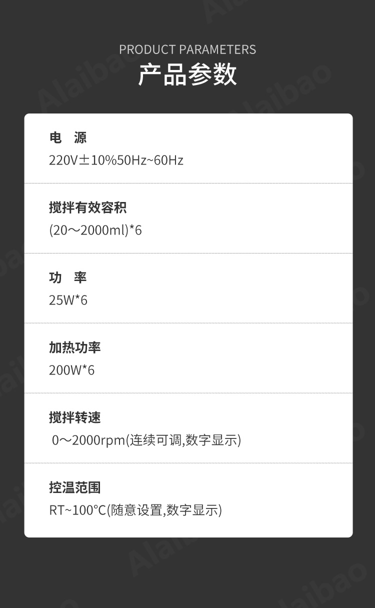 攪拌功率40W*6RT-100數(shù)顯顯示溫度帶定時(shí)功能