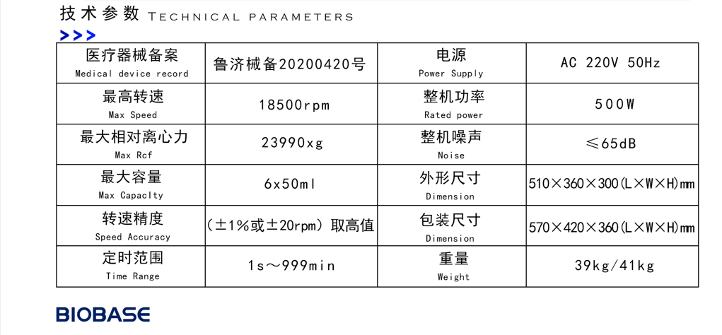 轉(zhuǎn)速:18500rpm,轉(zhuǎn)子容量:6*50ml