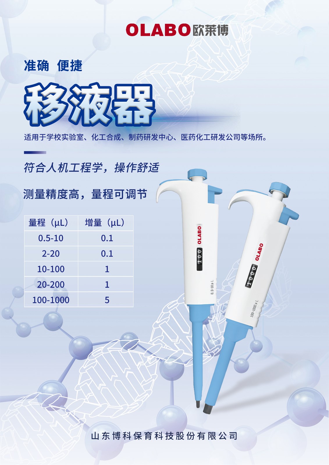 當(dāng)前位置 > 首頁 > 產(chǎn)品中心  > 樣品前處理 > 移液器> 國產(chǎn)OLABO,B系列單道可調(diào)式移液器100-1000μl